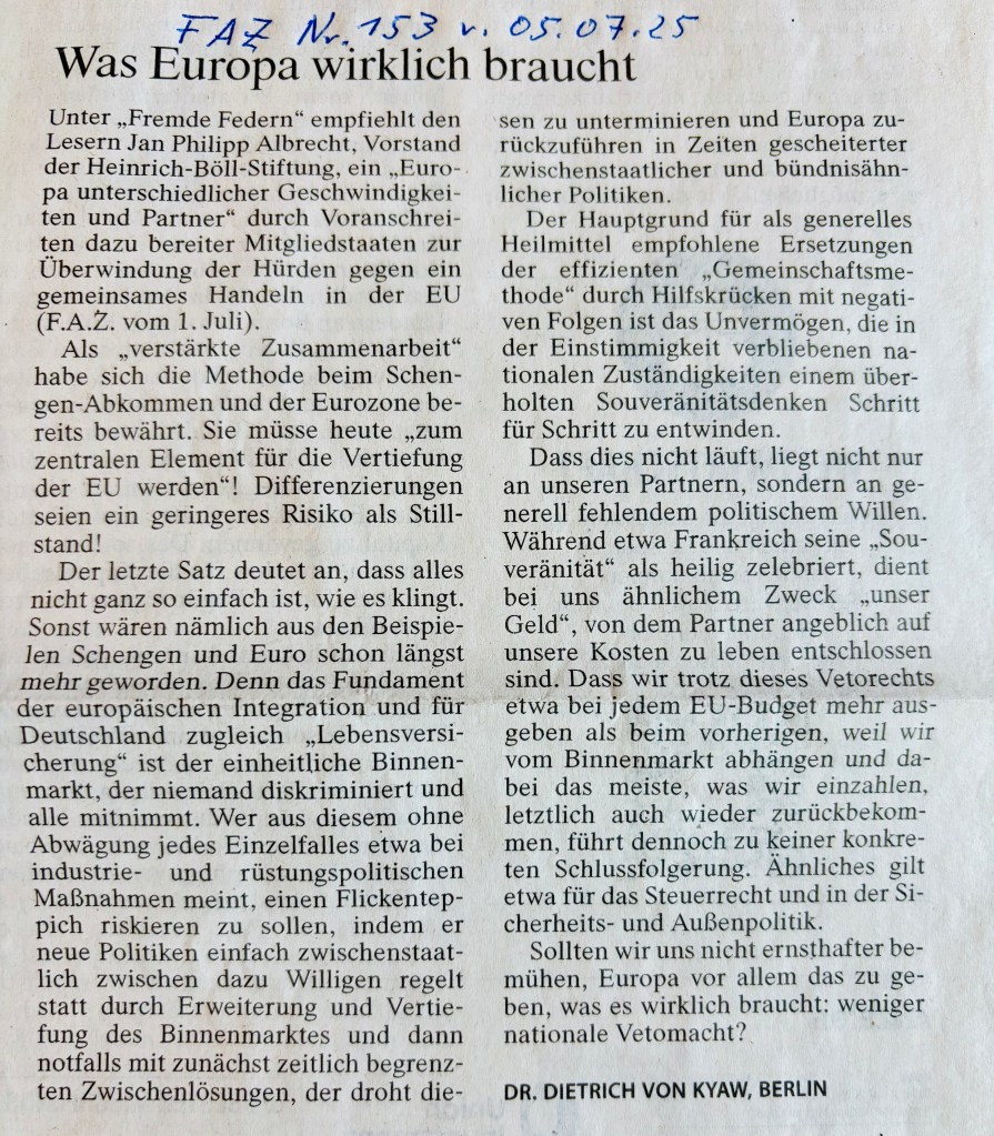 Was Europa wirklich braucht | FAZ, 05.07.2025