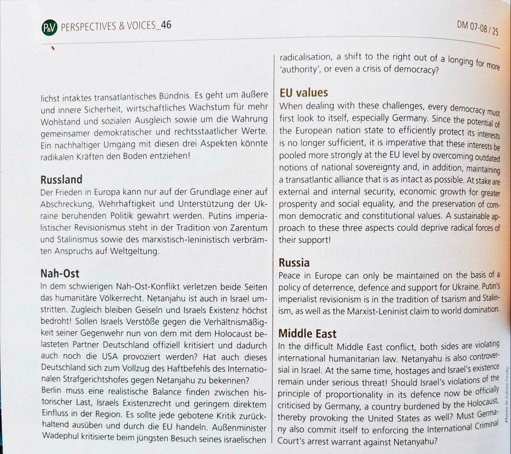 Demokratie, Freiheit, Völkerrecht und Selbstbehauptung | Diplomatisches Magazin 07/ 08.2025